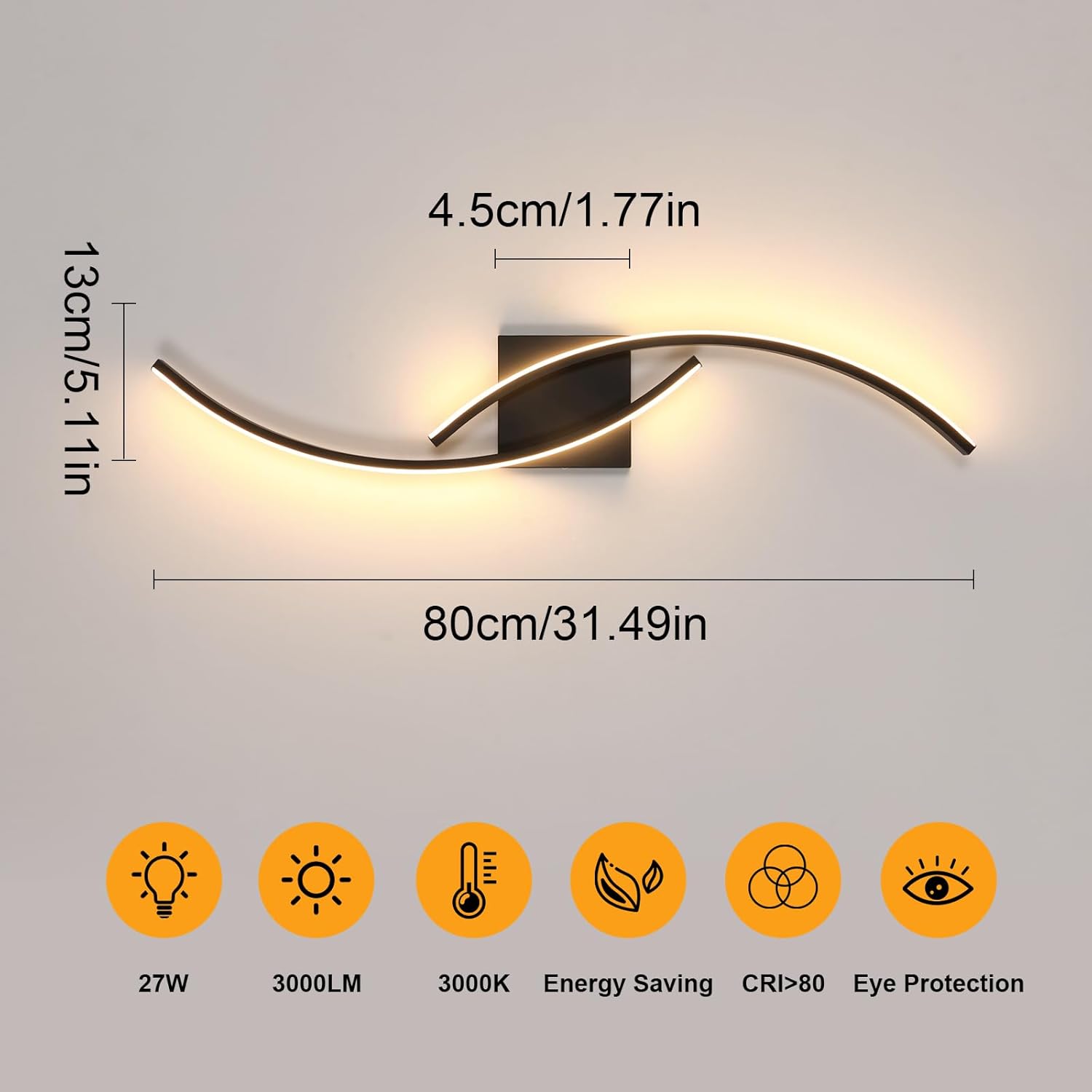27W LED, 3000LM, 3000K warm white, providing soft, eye-friendly light to create a cozy atmosphere in any room.