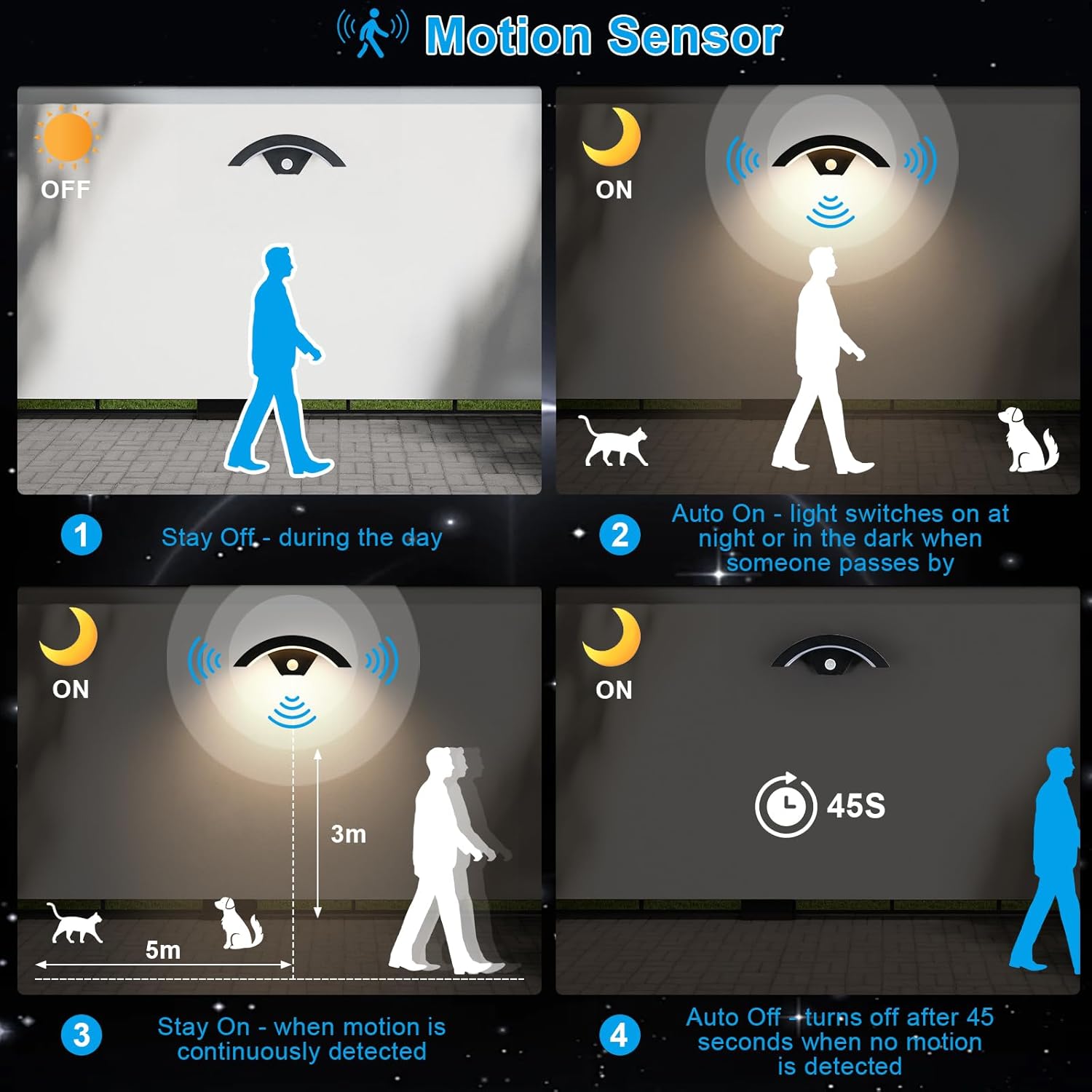 Ta nowoczesna lampa ścienna LED do użytku zewnętrznego łączy elegancki wygląd z inteligentnym czujnikiem ruchu, zapewniając bezpieczne, energooszczędne i wygodne oświetlenie dla przestrzeni takich jak ogród, balkon, wejście czy ścieżka.