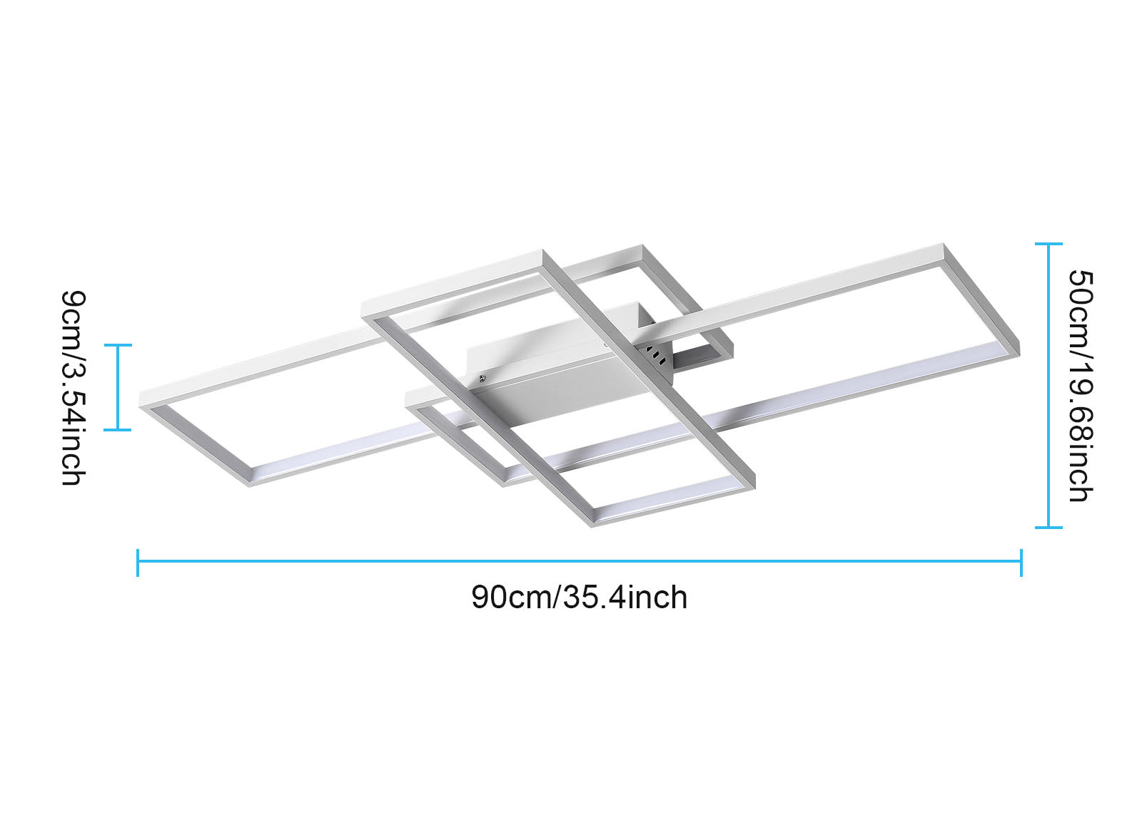 Dzięki współczesnemu wzornictwu ta lampa sufitowa składa się z 3 prostokątów z białymi obramowaniami, jest prosta i elegancka, to najlepszy wybór do dekoracji wnętrz! Moc oświetlenia 54 W może oświetlić przestrzeń od 10 do 20 stóp kwadratowych. Lampa sufitowa zapewnia odpowiednie oświetlenie.