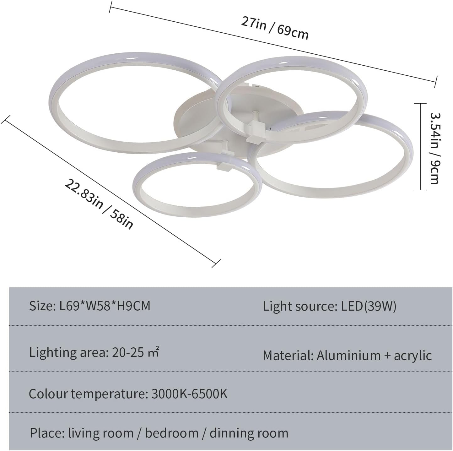 Puissance par lumière: 39W